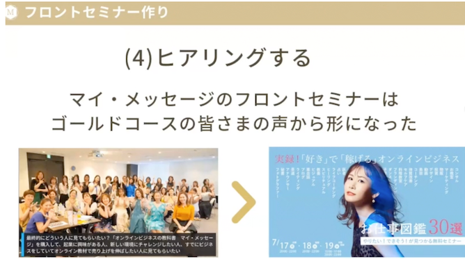 魅力的なフロントセミナーを設計し、お客さまに「新たな未来への一歩」を踏み出すきっかけを提供していってくださいね!