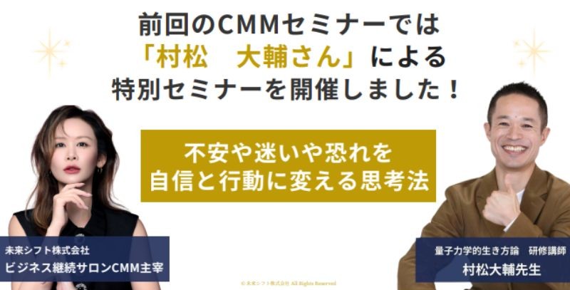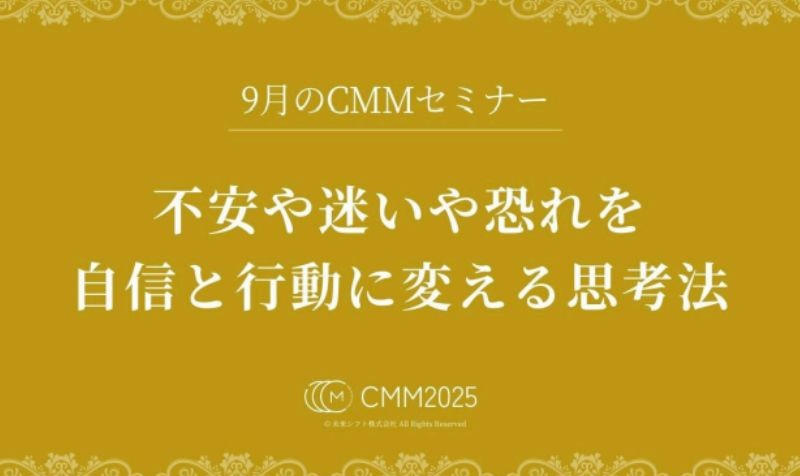 9月のCMMセミナーは「不安や迷いや恐れを自身と行動に変える思考法」をテーマにお届けしています。