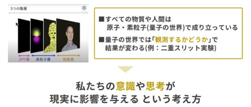 量子力学の世界では、自分自身が発するフォトン(思いのエネルギー)と同じ現象を引き起こすため、考え方を変えれば自然と壁が消えていくとのお話でした。