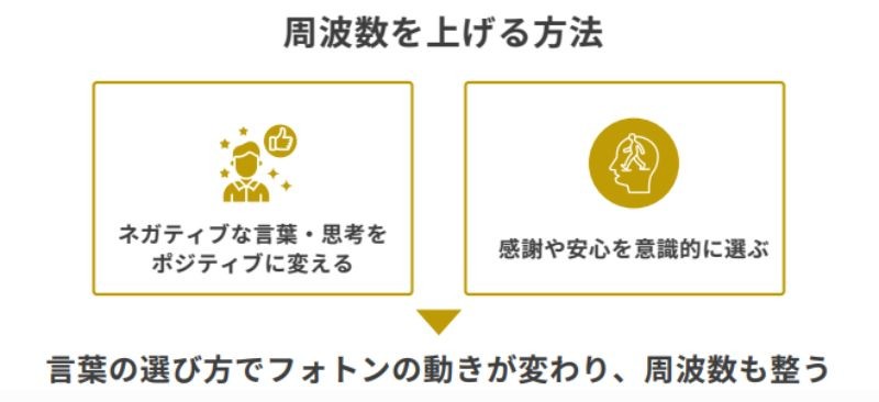 さらに人の感情や思考にも周波数があり、ポジティブな状態ほど周波数が高くなるとのこと。