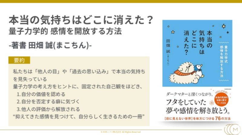 セミナーの後半では、量子論の研究者である田畑誠さん著書「本当の気持ちはどこに消えた?」を参考に、手軽にできる成功体験の分析ワークを紹介してくださいました。