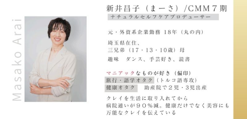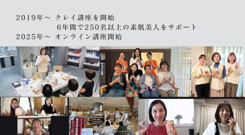 2019年にクレイ(※)を使ったセルフケア講座を開始し、これまでに250名以上の素肌改善をサポートしてこられました。