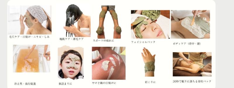 さらに頭皮に使うと毛穴がきれいになり、髪の健康や睡眠にも良い影響を与えられたり、入浴剤として使用すれば血行を促進し、冷え性の緩和や湯冷め防止効果も期待できたりと、クレイはまさに良いことずくめ。