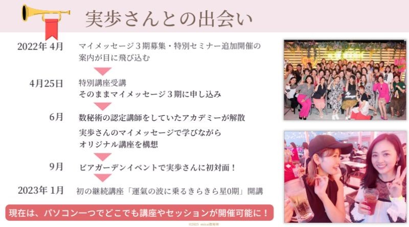 現在はオリジナル講座を主宰し、豊かな人生を叶える数秘術の魅力を多くの人に伝えておられます。