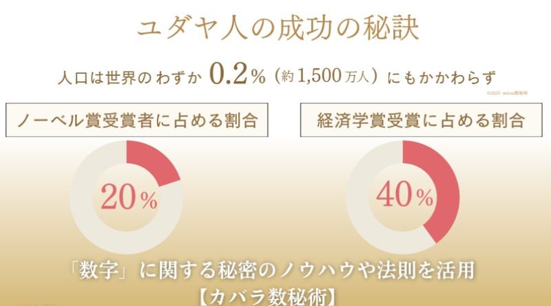 その言葉を裏付ける例が、ユダヤ人の発展。ユダヤ人は古くから日常的に数字を読み解き、生活や仕事に活かすことで成功を収めてきた民族であり、それはノーベル賞や経済学賞の受賞者数の多さにも表れています。