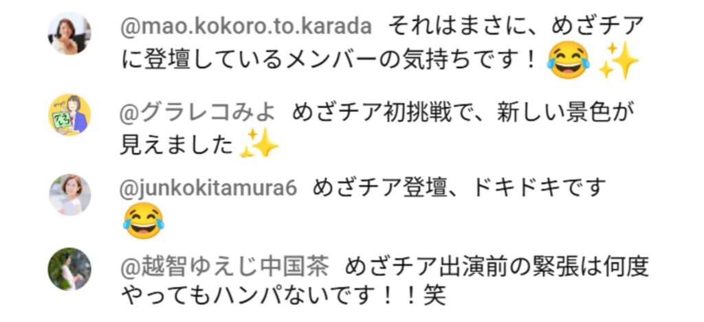 実歩さんの言葉を聞いて、コメント欄には「めざチア」に出演した経験のある方々からの共感の声や、チャレンジする姿勢を尊敬するコメントがたくさん届いていました。